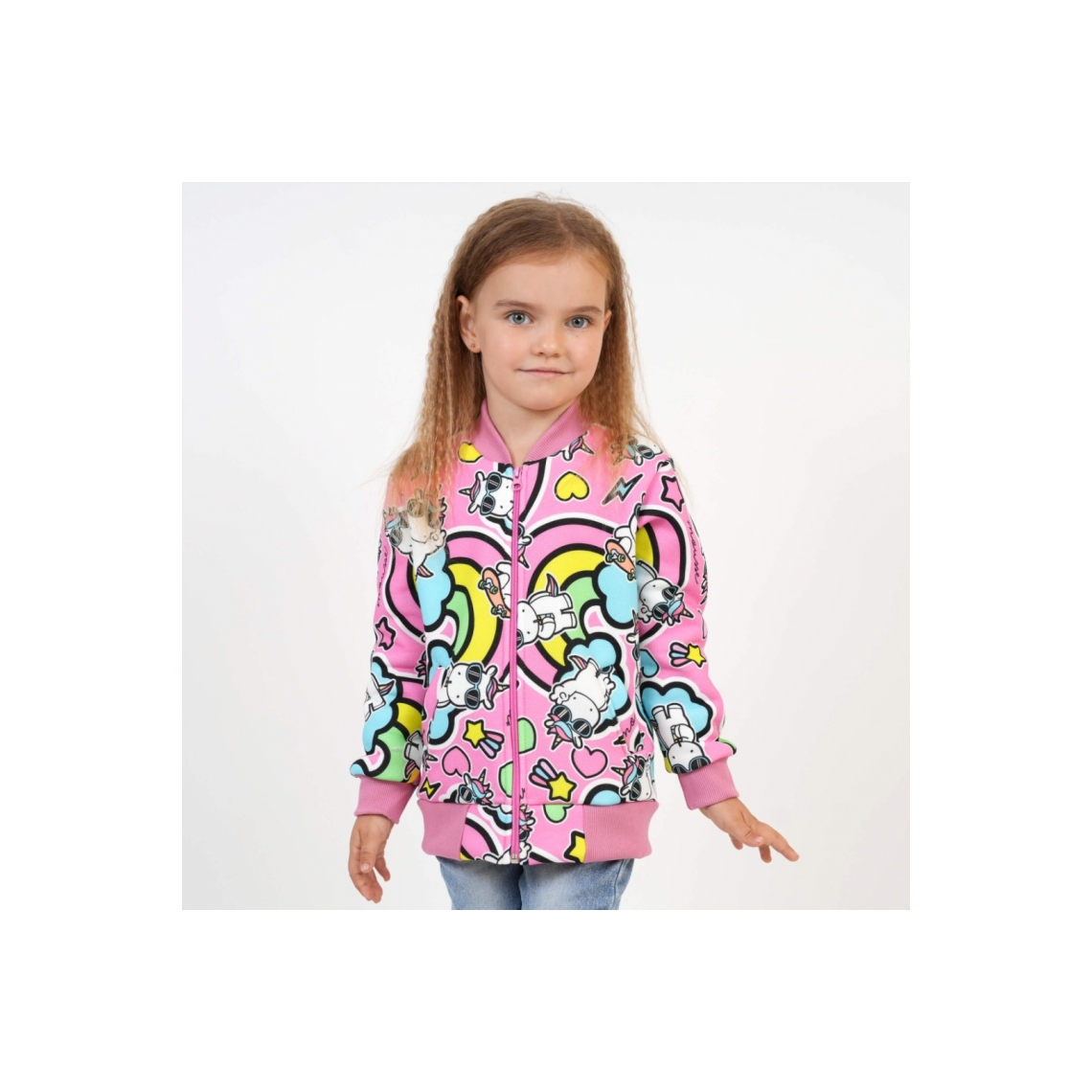 Бомбер для дівчинки Киці рожевий тринитка на флісі