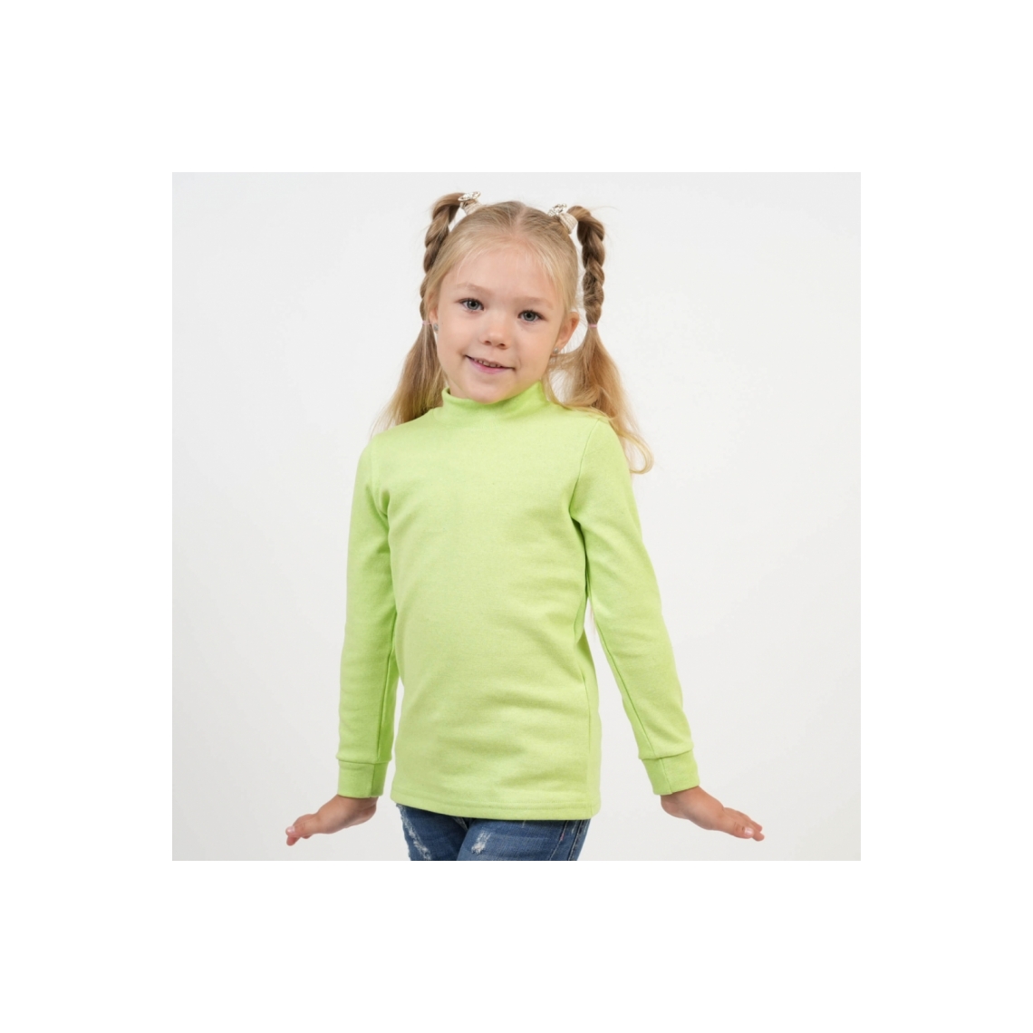 Гольф щільний для дівчинки з начісом салатовий стрейч з начісом