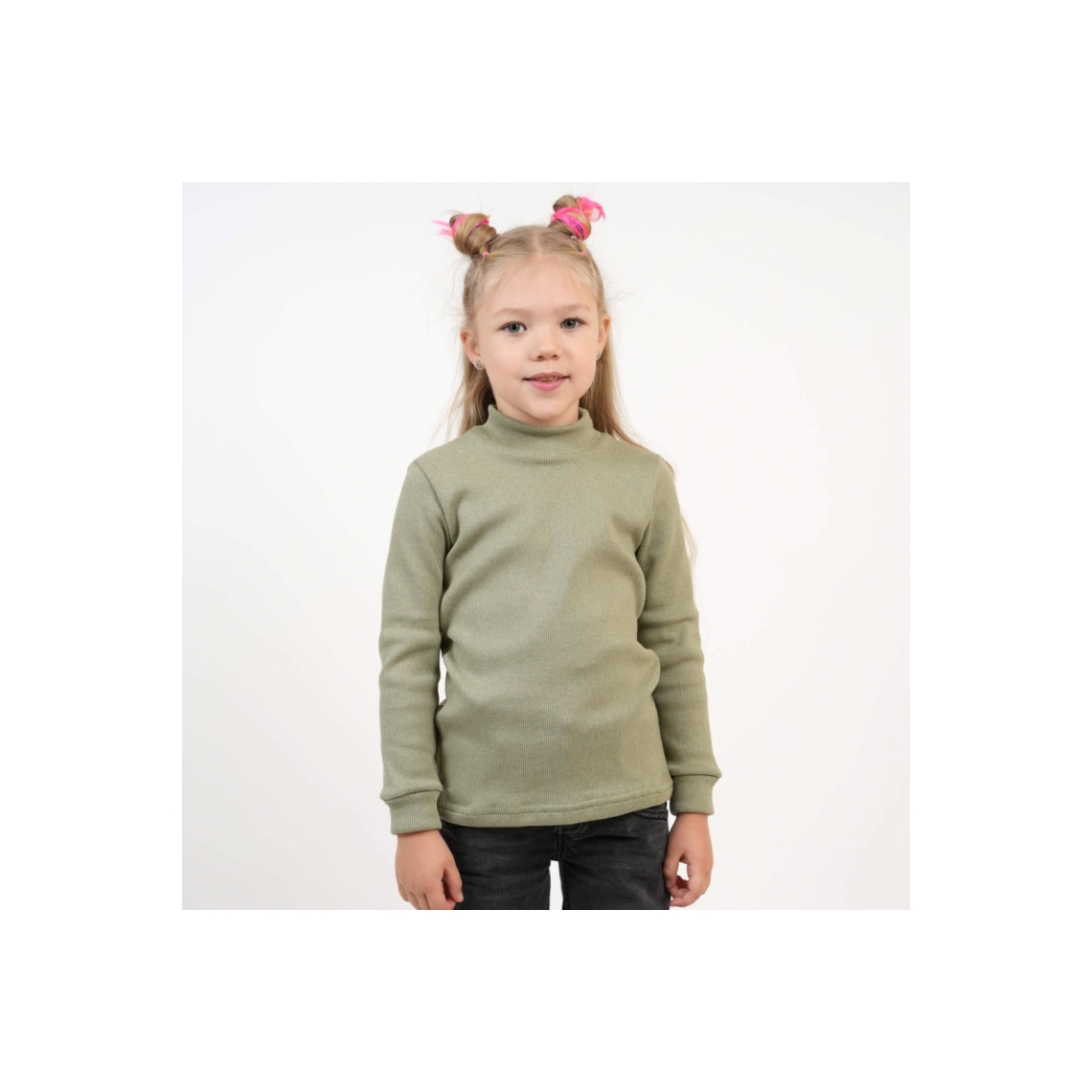 Гольф дитячий оливковий рубчик з начісом