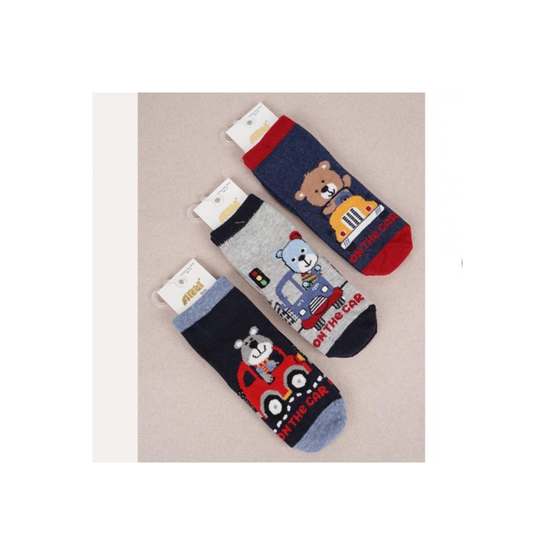 Шкарпетки для хлопчика Ведмедик на машині сірий махра