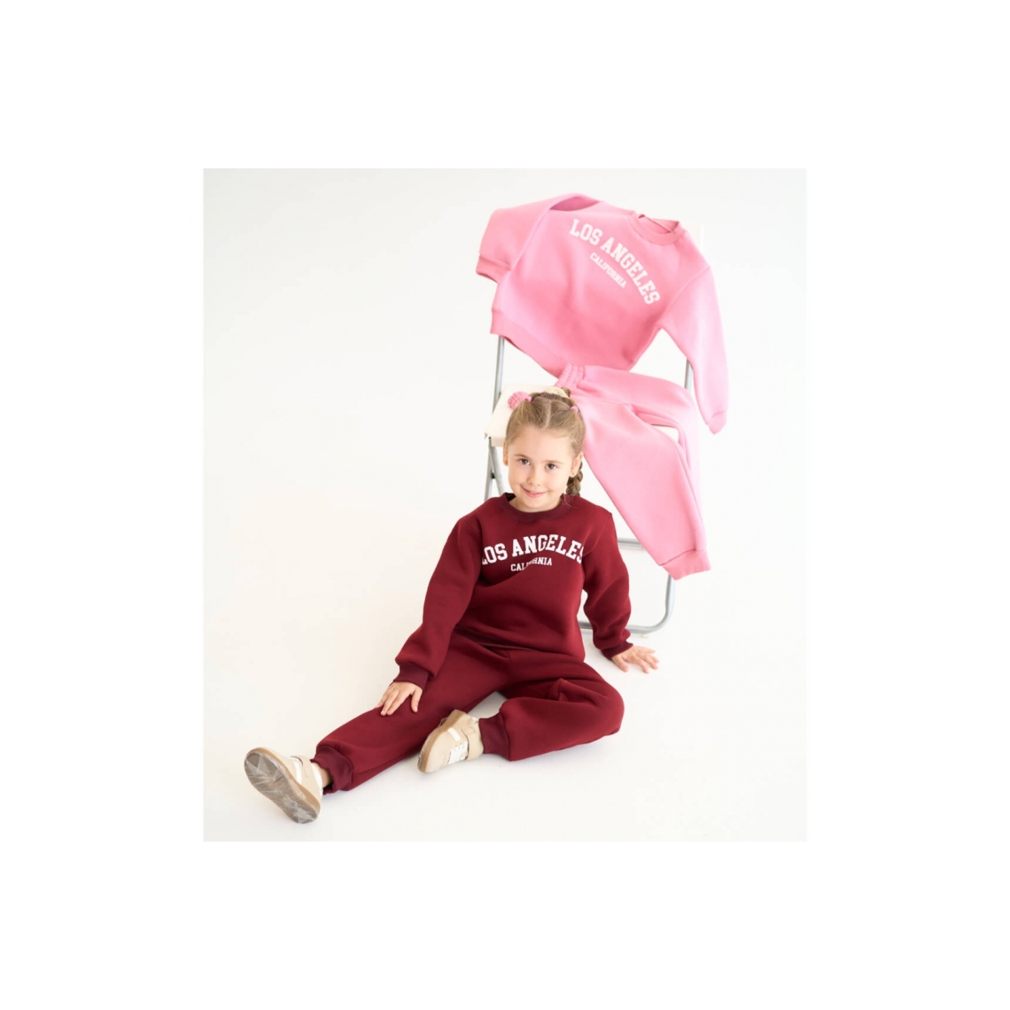 Костюм теплий для дівчинки бордо тринитка на флісі