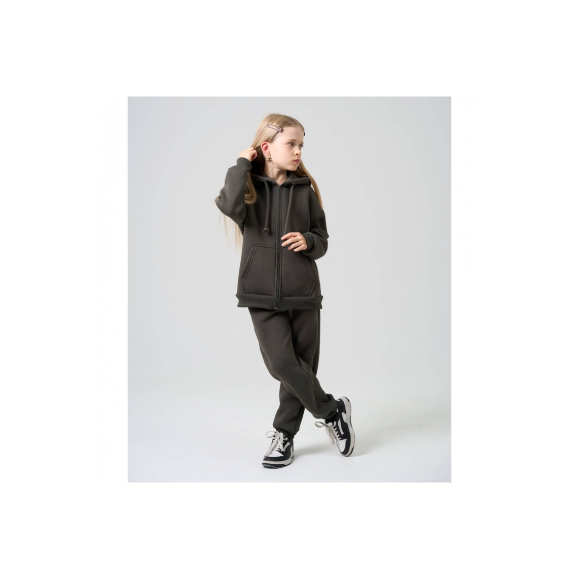 Костюм для дівчинки хакі тринитка на флісі