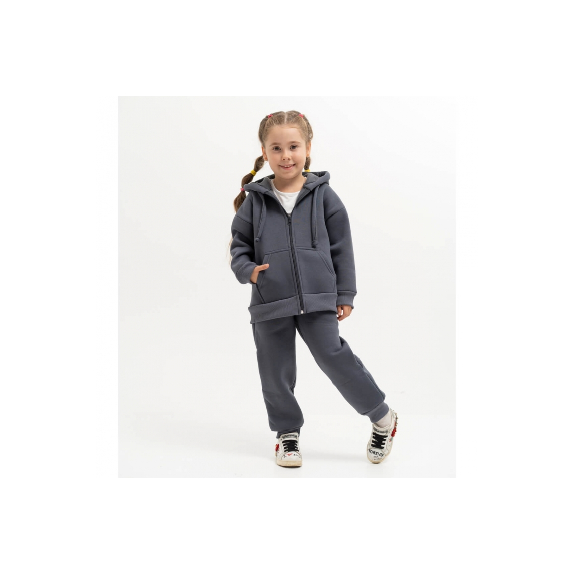 Костюм теплий для дівчинки графіт тринитка на флісі