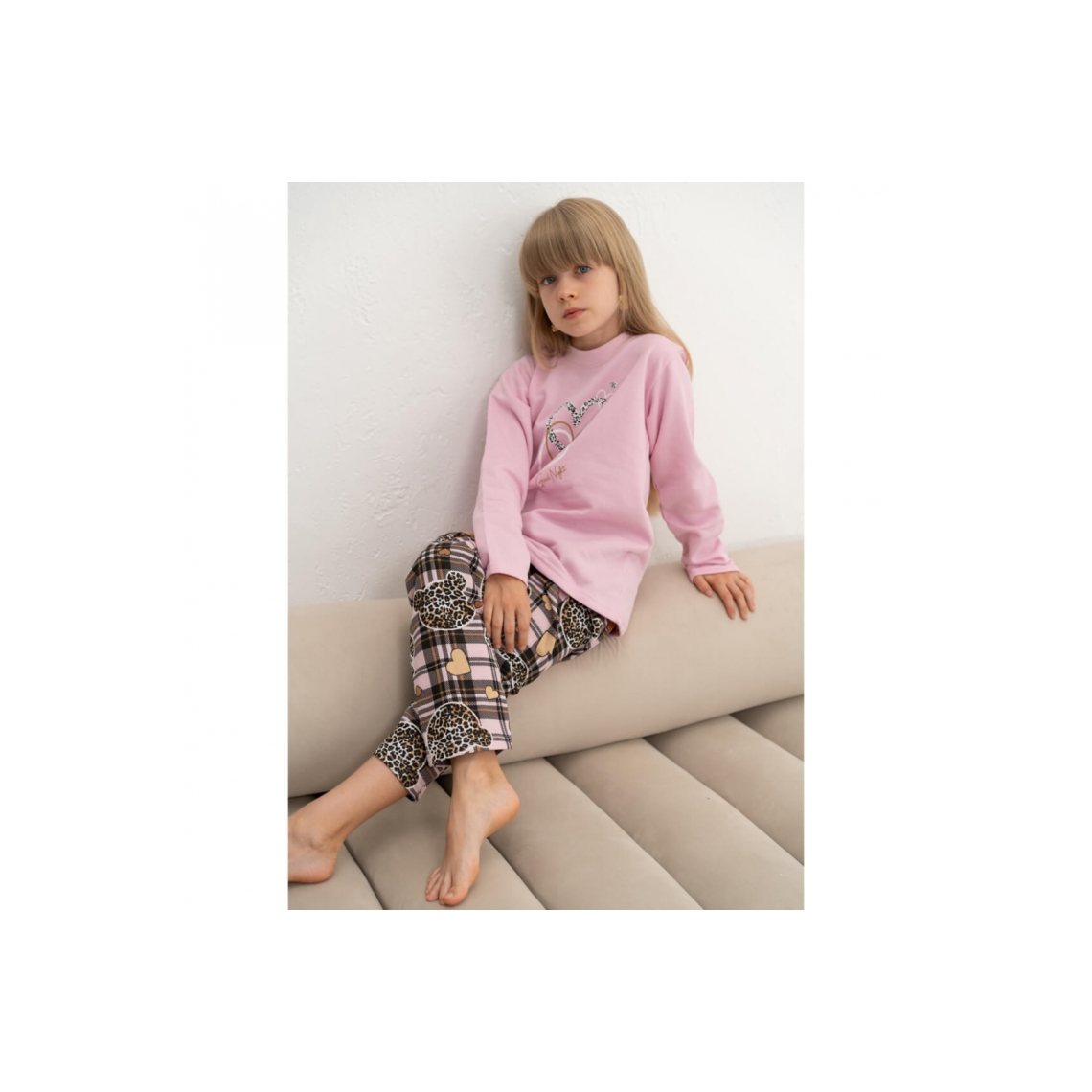 Піжама для дівчат рожевий Лео рожева начіс (футер)