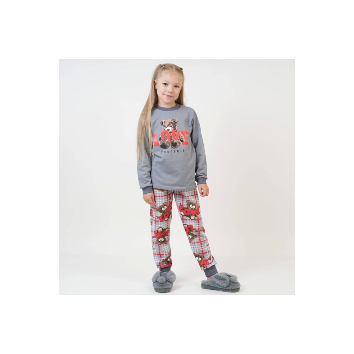 Піжама для дівчинки Ведмедик Сердечка графіт начіс(футер)