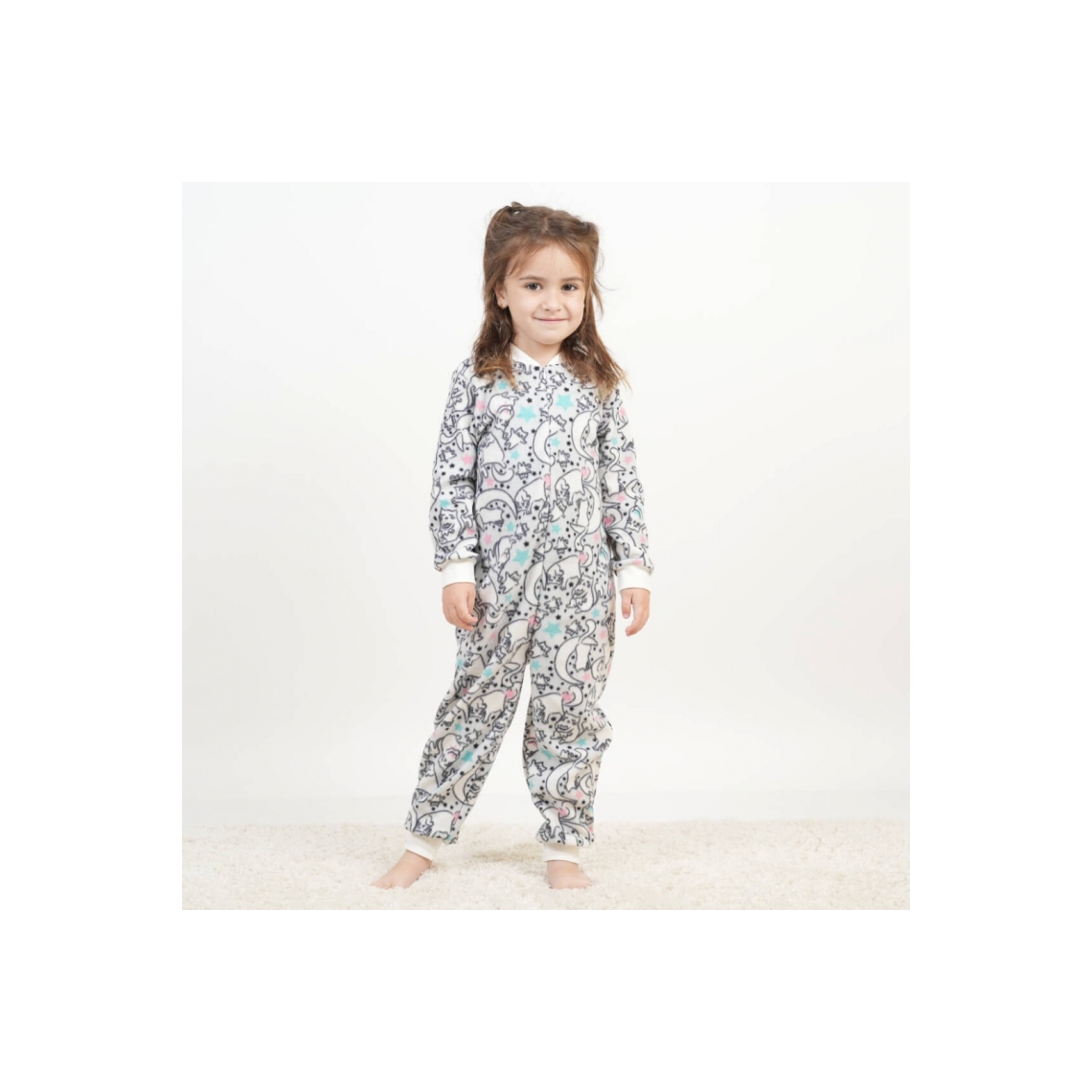Піжама-комбінезон для дівчинки Киці білий мікрофліс