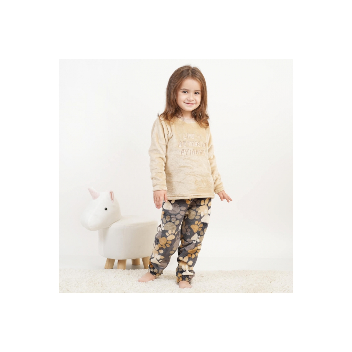 Піжама пухнаста для дівчаток Лапки бежевий велсофт