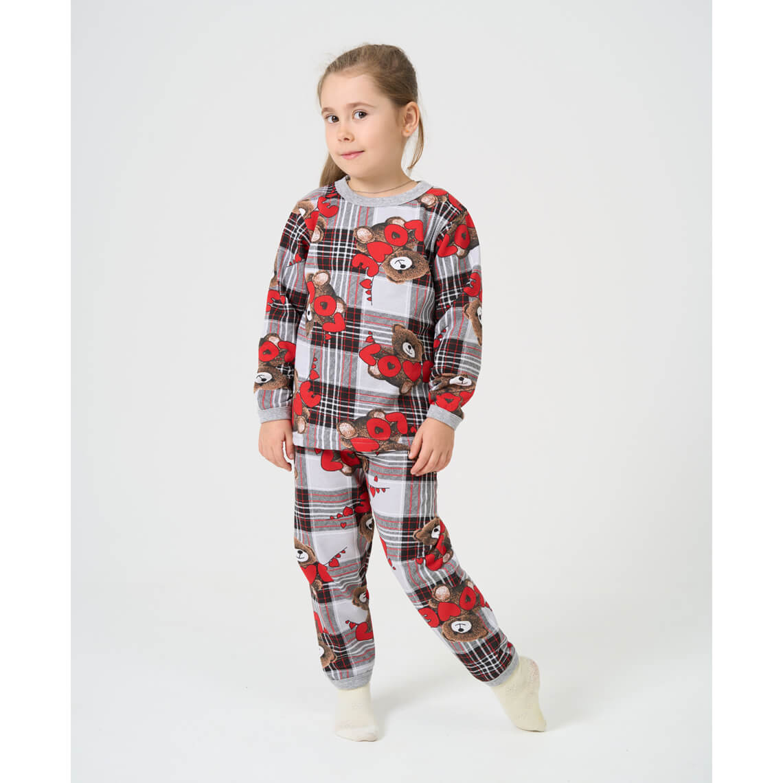 Піжама для дівчинки Ведмедик клітинка сірий начіс(футер)