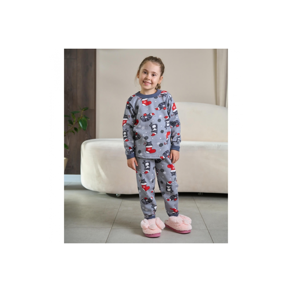 Піжама для дівчинки Котики графіт начіс (футер)