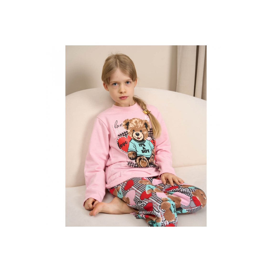 Піжама для дівчинки Ведмедики рожевий начіс (футер)
