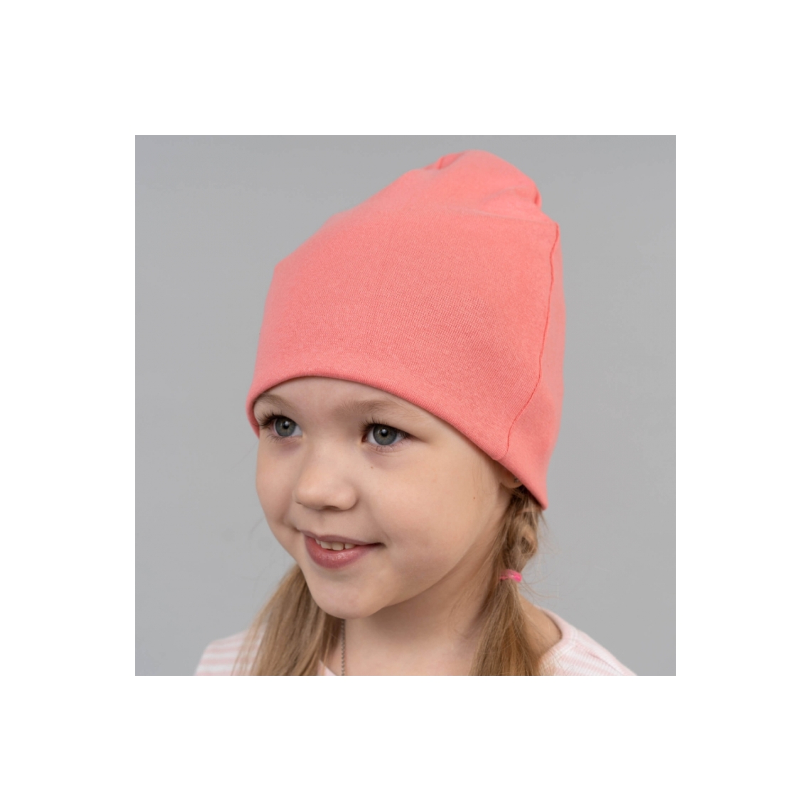 Шапка подвійна для дівчинки однотонна кораловий стретч
