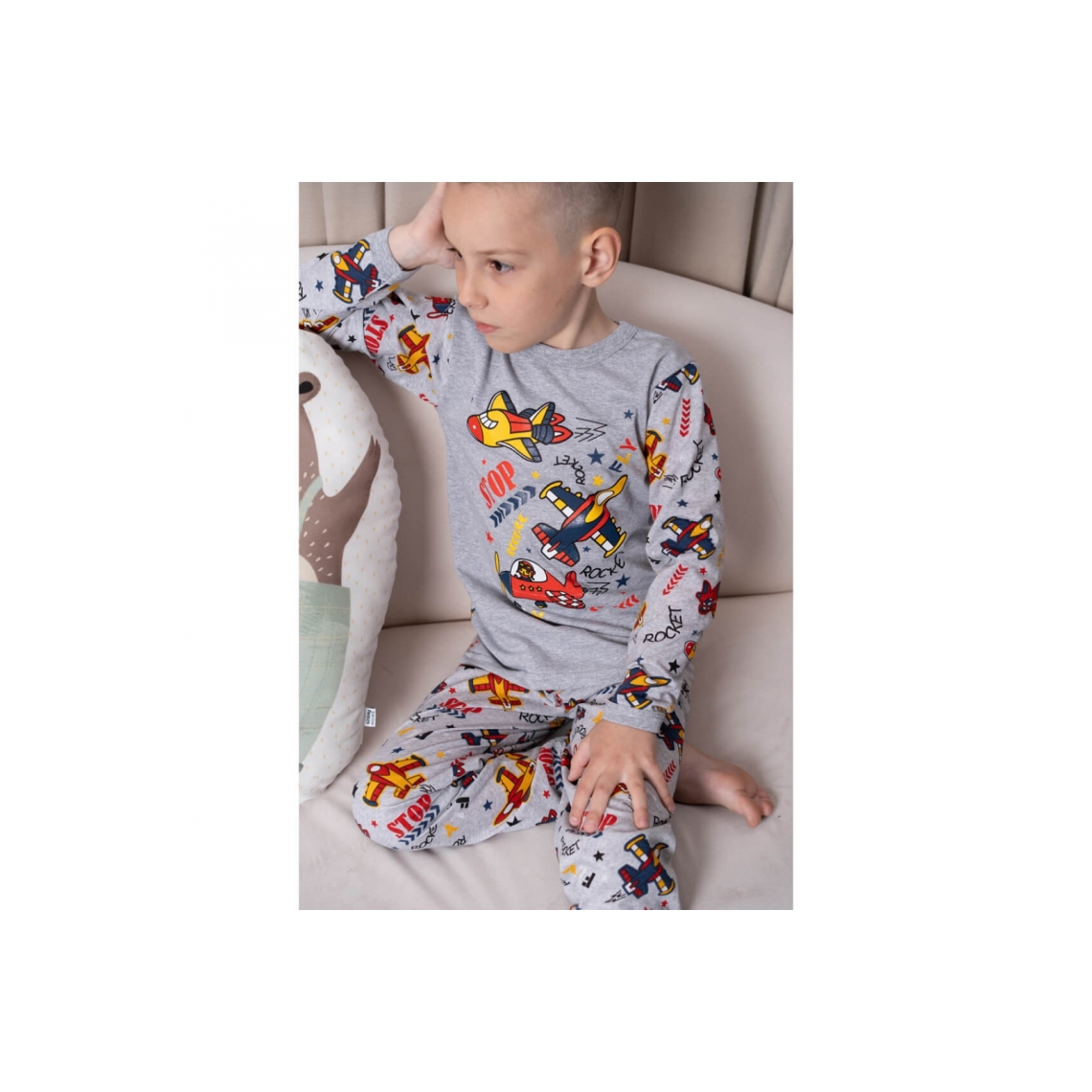 Піжама для хлопчика Літаки сірий кулір