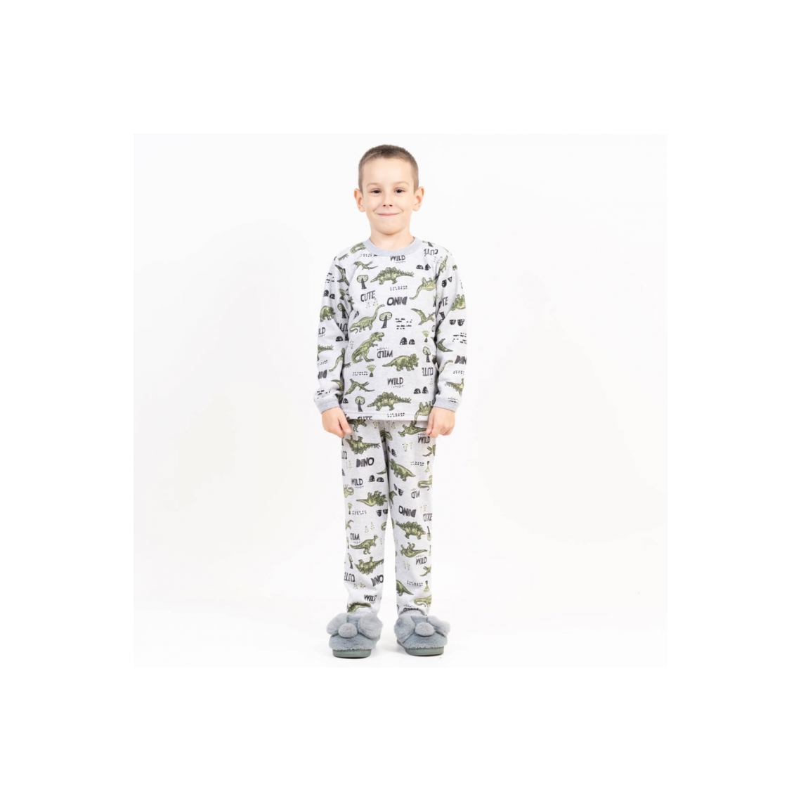 Піжама для хлопчика Зелений Діно сірий начіс (футер)