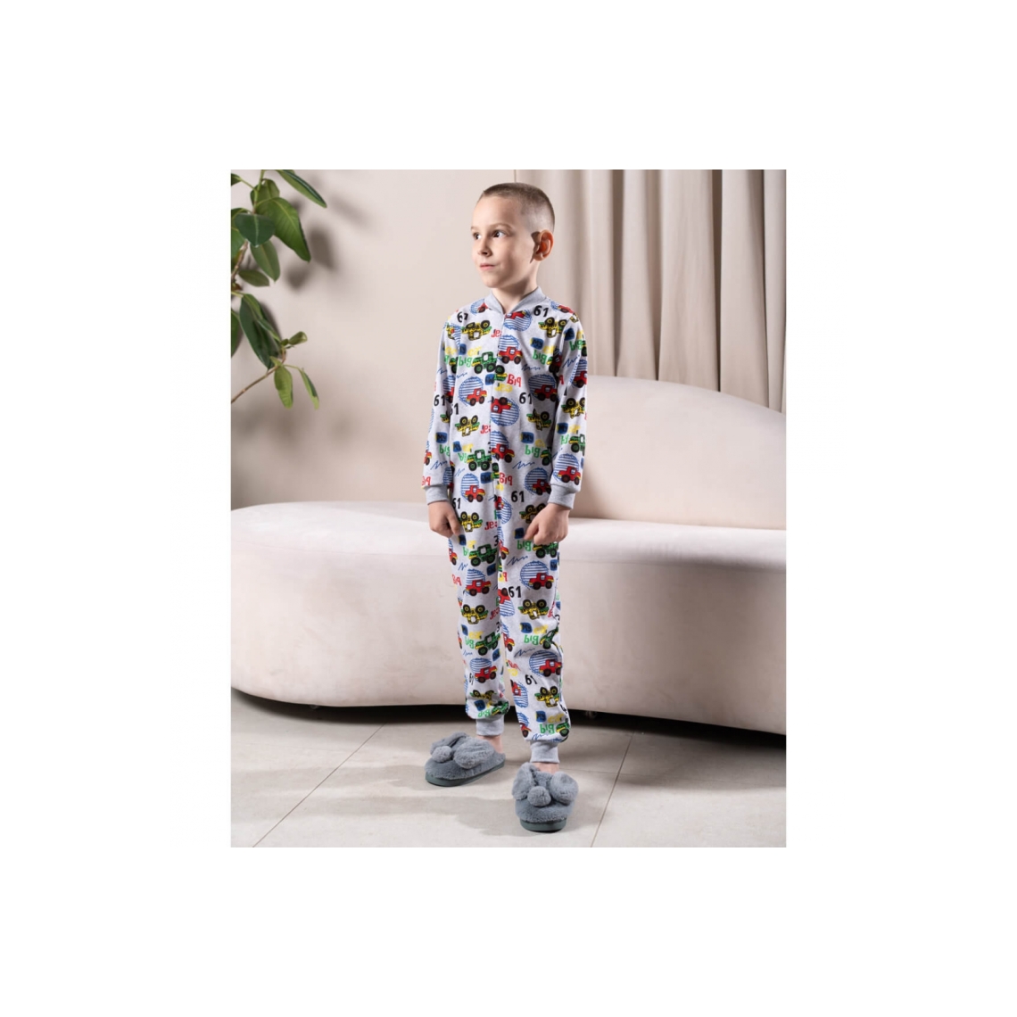 Піжама-комбінезон для хлопчика Машини Нові сірий кулір