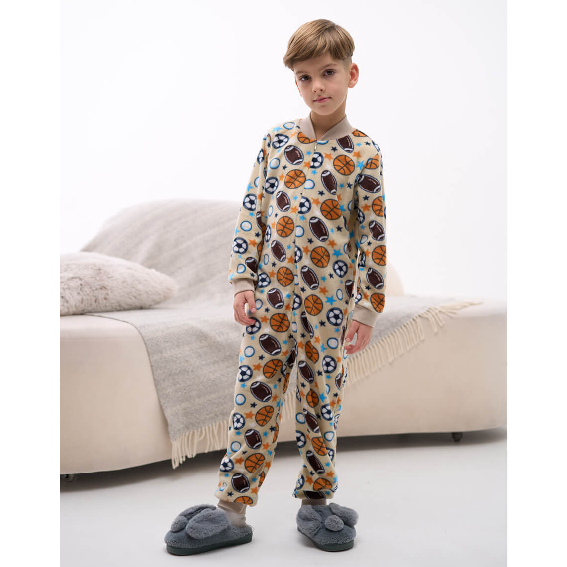 Піжама-комбінезон для хлопчика бежевий М'ячі мікрофліс