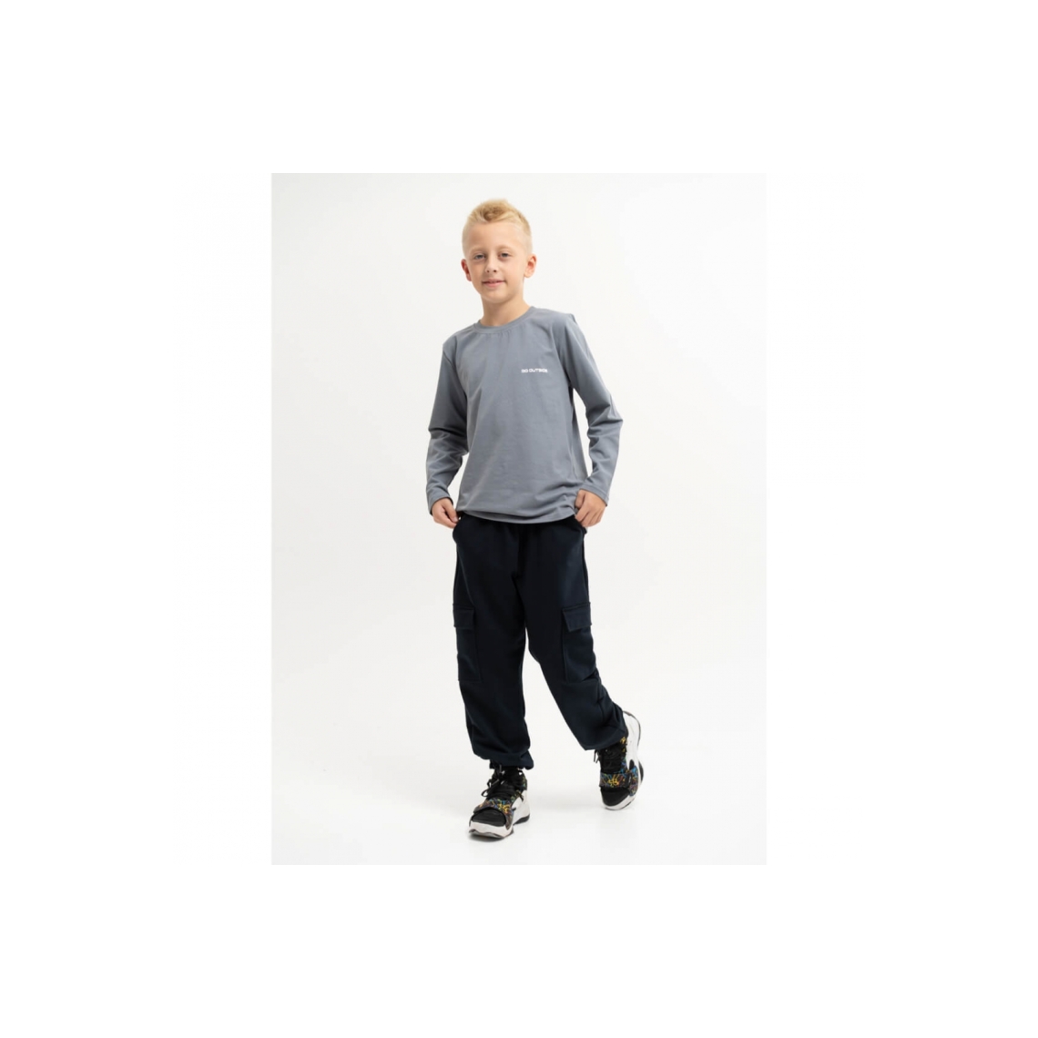 Спортивні джогери карго для хлопчика темно-синій двонитка