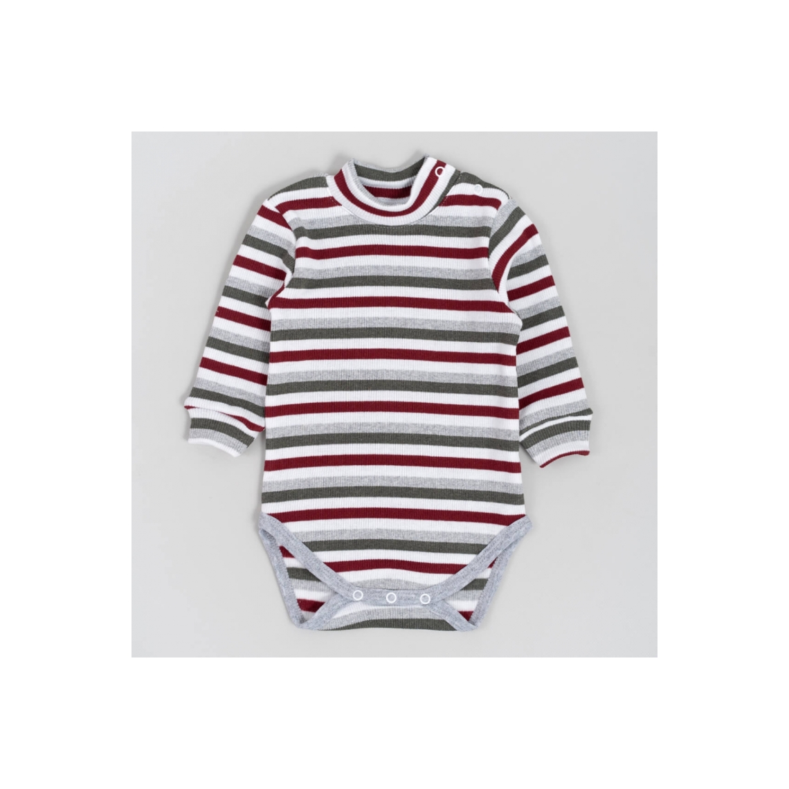 Боді теплий в полоску сіро-бордовий рубчик з начісом