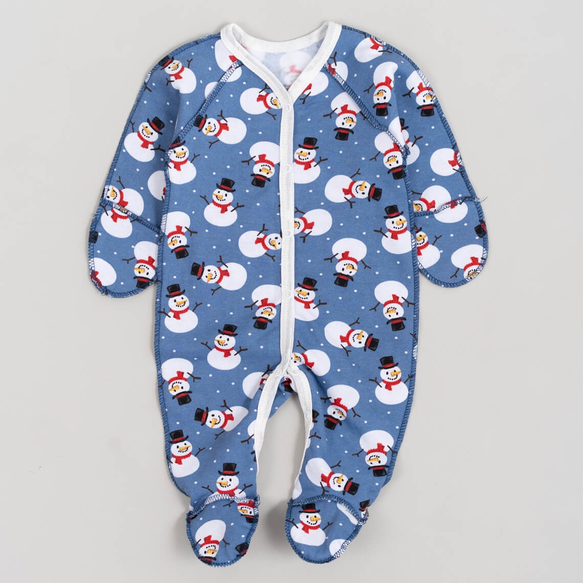 Сліп для новонароджених Сніговики синій начіс високої якості(футер)