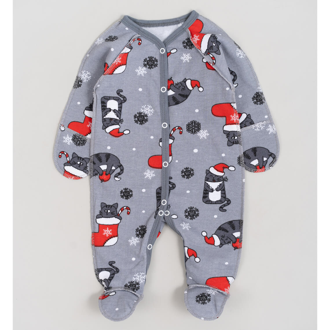 Сліп для новонароджених Новорічний Котики графіт начіс (футер)