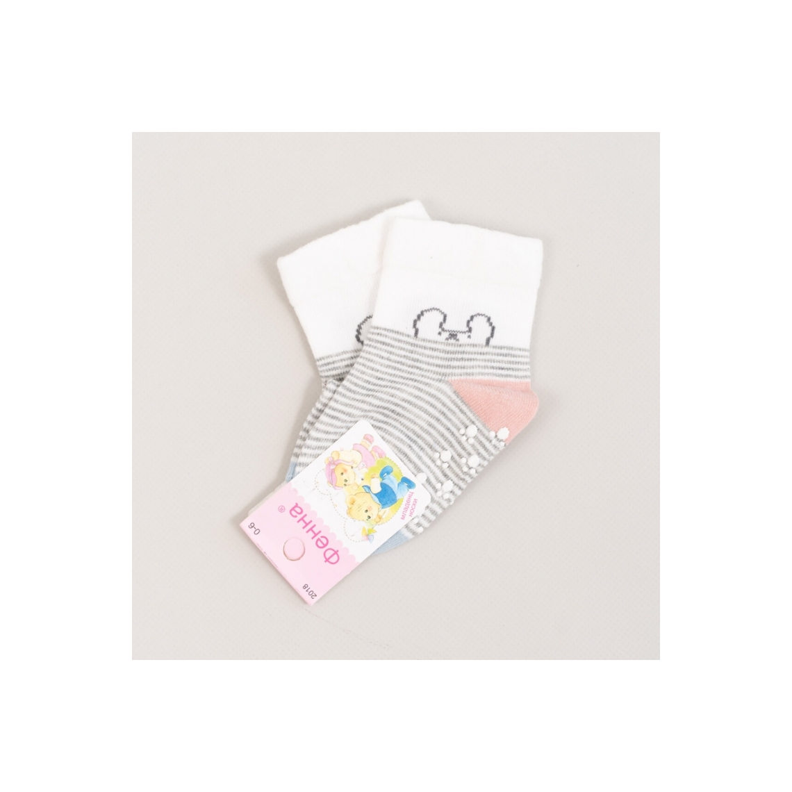 Шкарпетки з антіковзанням для малят біло-сірий бавовна