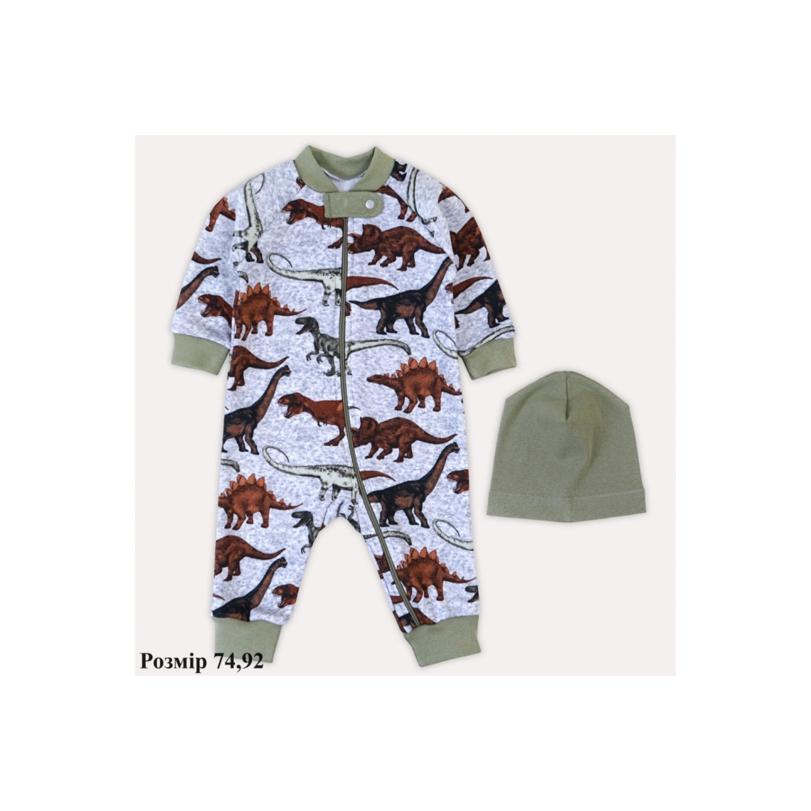 Комбінезон з шапочкою ясельний хакі тринитка петля