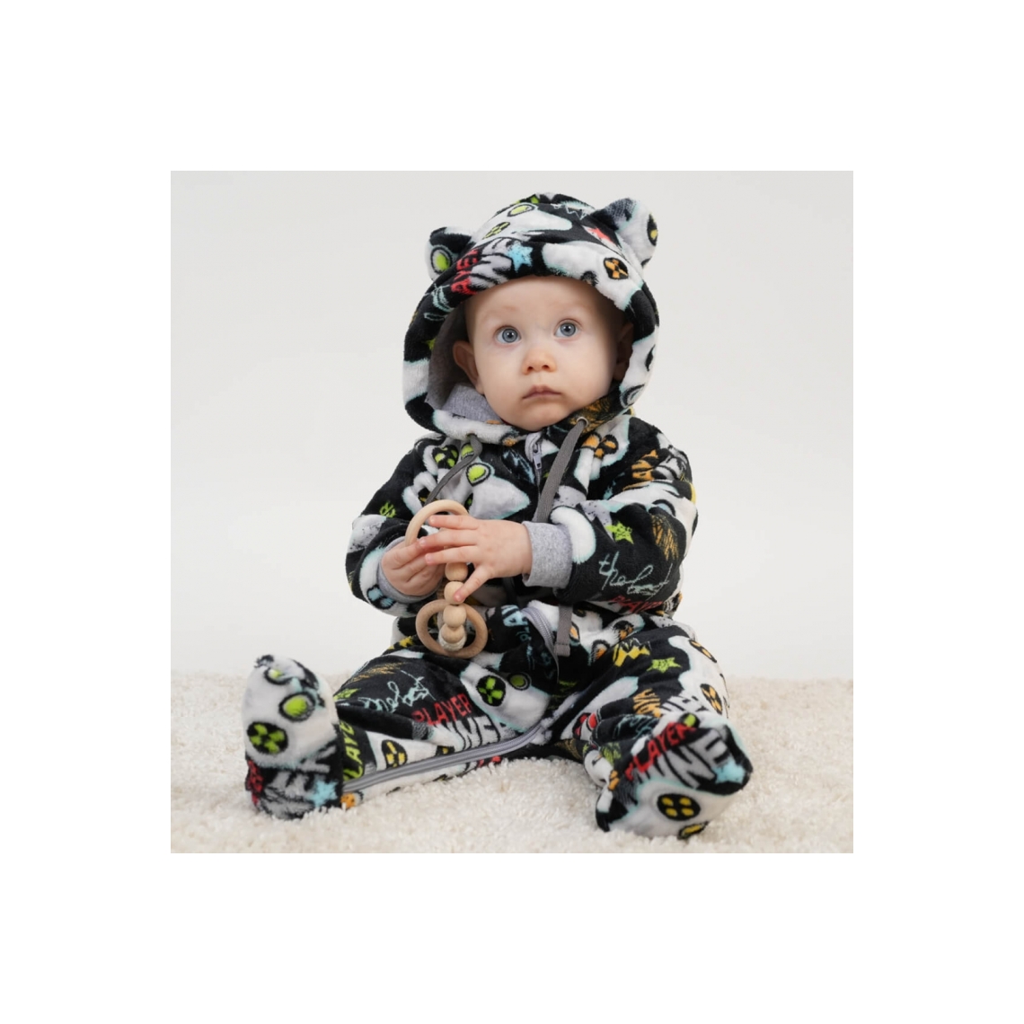 Комбінезон пухнастий для малят сірий Джойстики велсофт