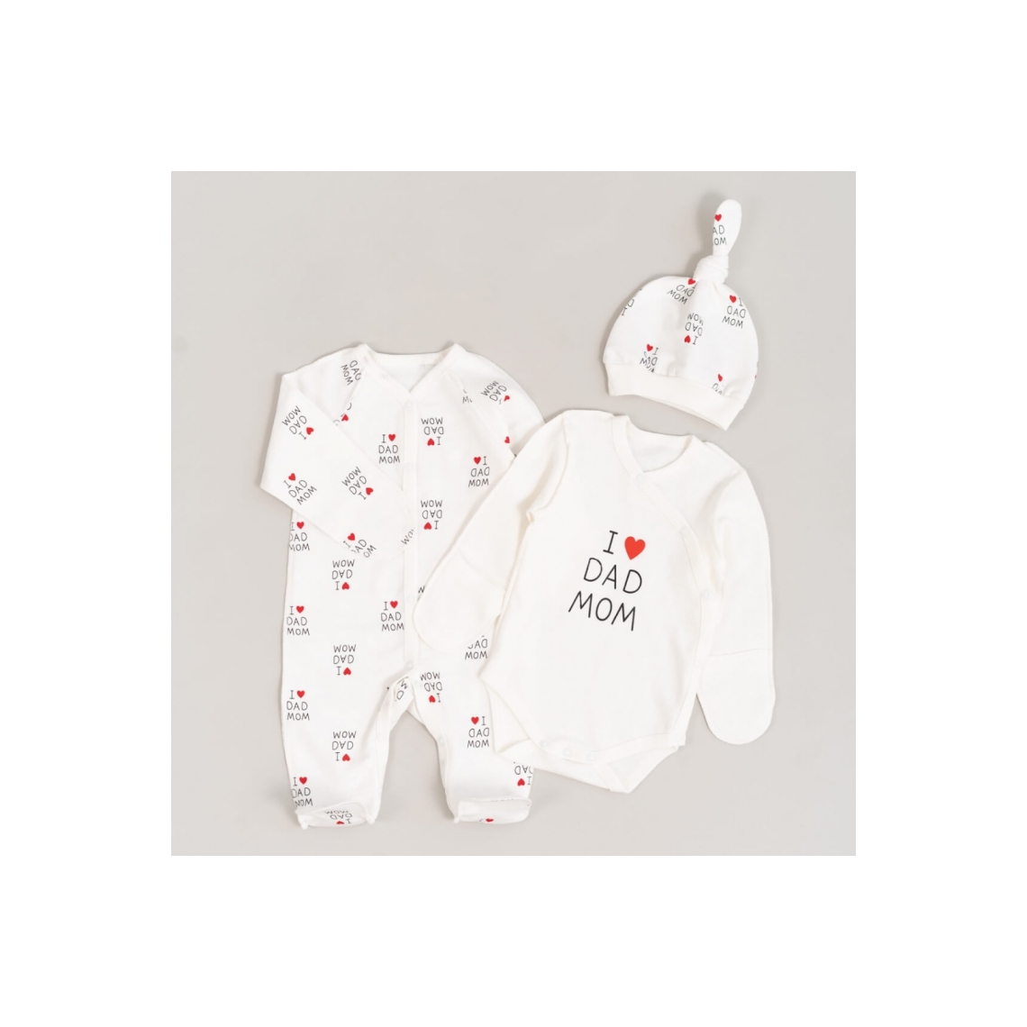 Комплект для новонародених Люблю маму, тата молочний начіс (футер)