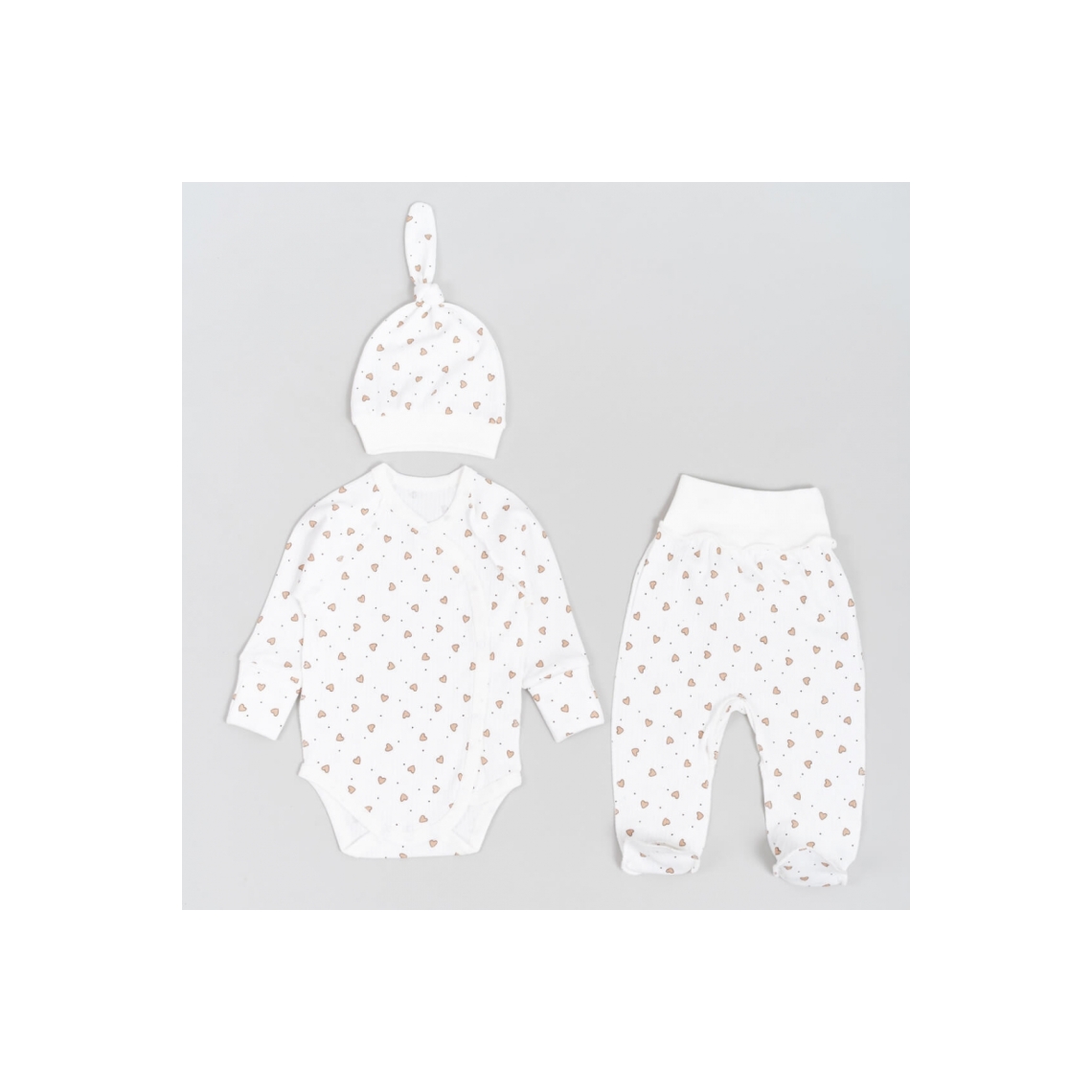 Комплект для Новонароджених Сердечка молочний інтерлок пеньє