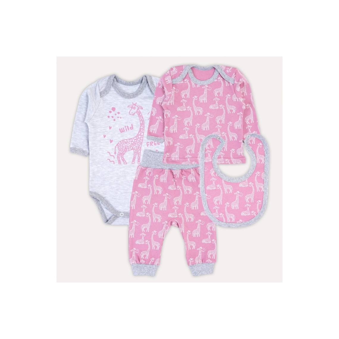 Комплект ясельний багатопредметник Жирафи рожевий інтерлок