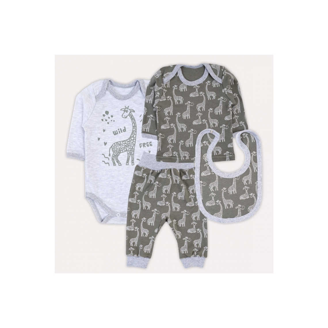 Комплект ясельний багатопредметник Жирафи хакі інтерлок