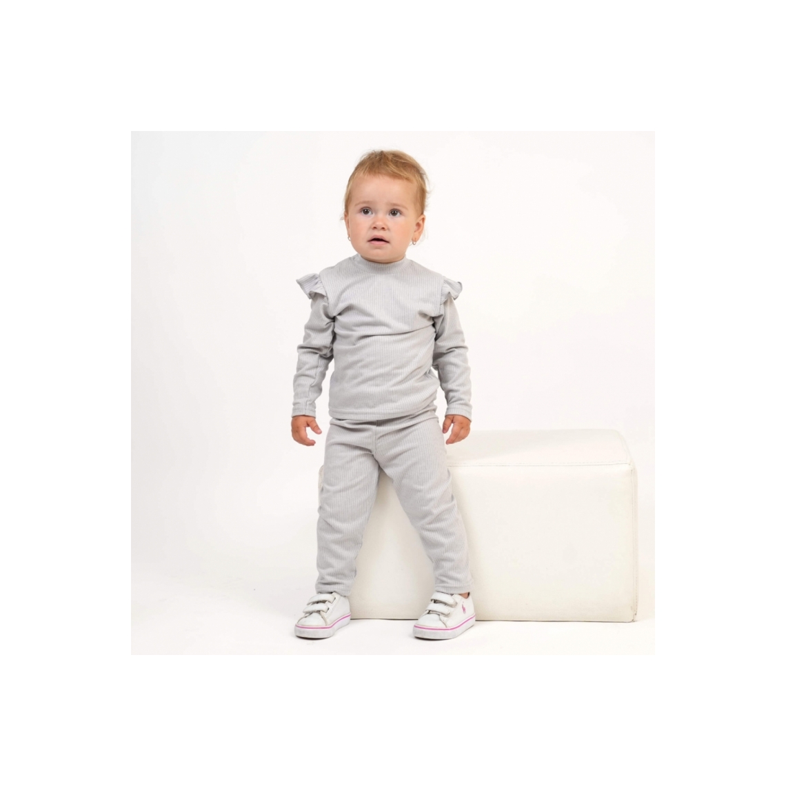 Костюм для дівчинки однотонний сірий рубчик